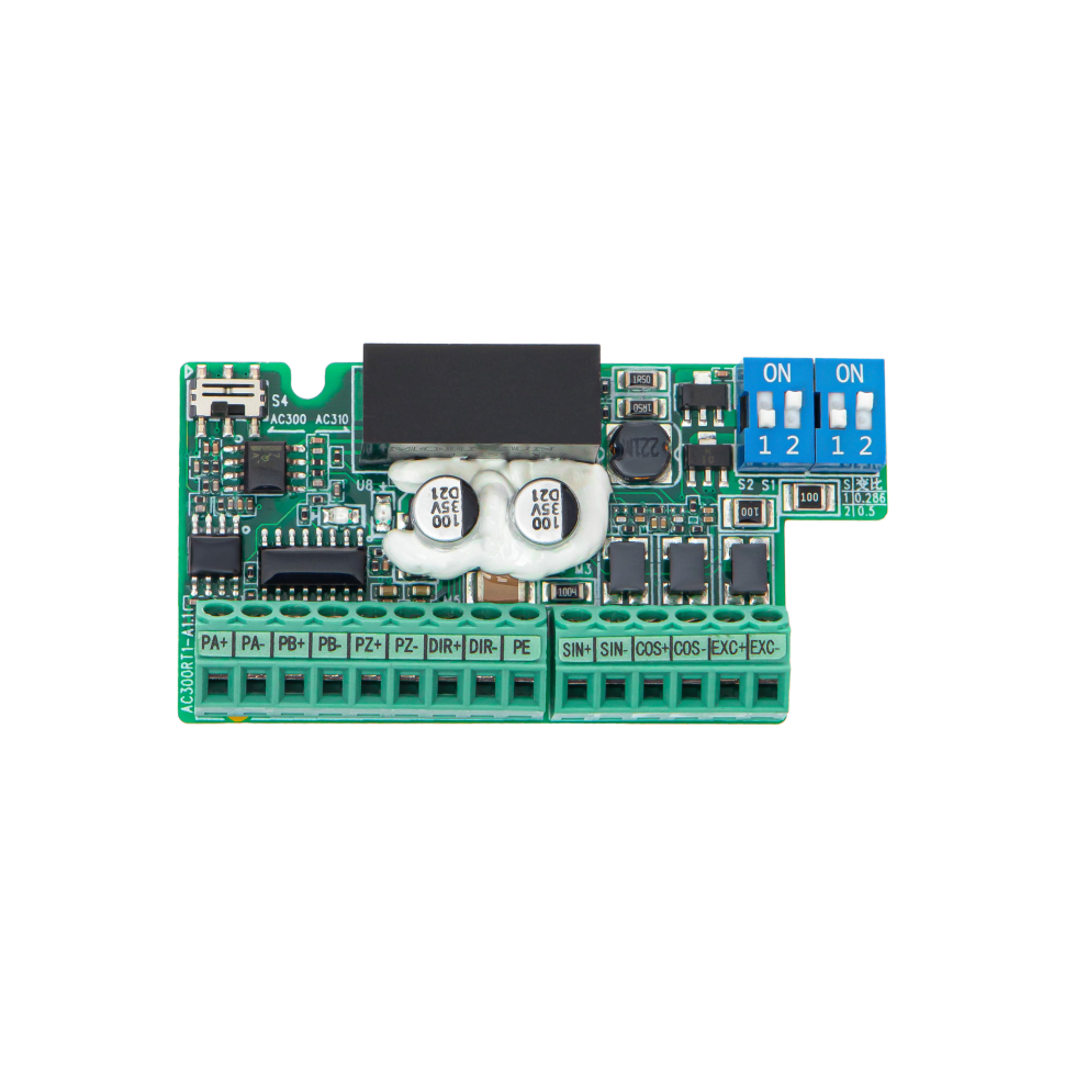 Резольверная опция для VF‑101 позволяет подключать резольверы для точного измерения угла поворота и скорости двигателя, обеспечивая высокоточное управление в приложениях, где критически важны надёжность и точность позиционирования при работе в сложных условиях.